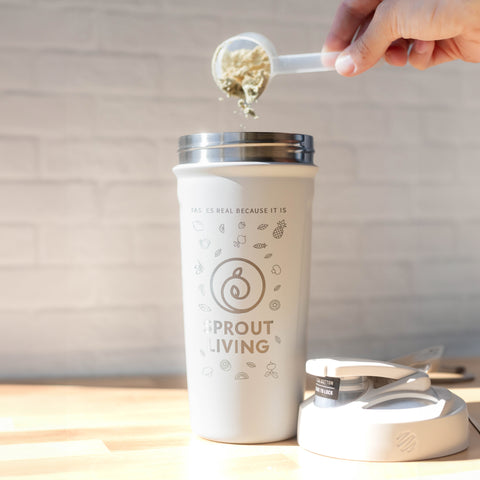 Easily blend up your daily protein shake and support us here at Sprout Living with this high-quality Shaker made by BlenderBottle. With its patented BlenderBall® wire whisk inside (the best available), you can quickly mix ingredients together for a smooth and consistent shake - every time. Live healthy and fit in style and on-the-go with this premium BlenderBottle protein shaker!