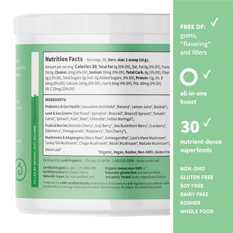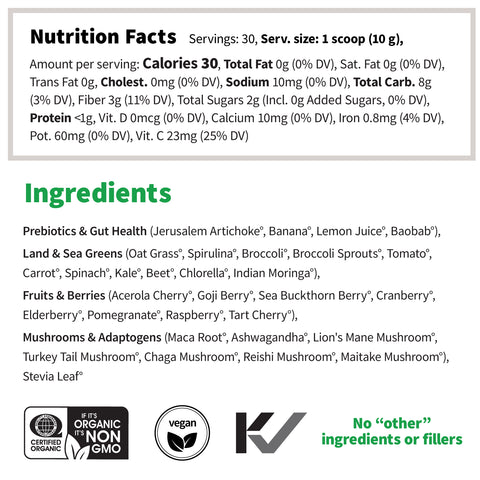 - Powerful blend of superfoods and adaptogens