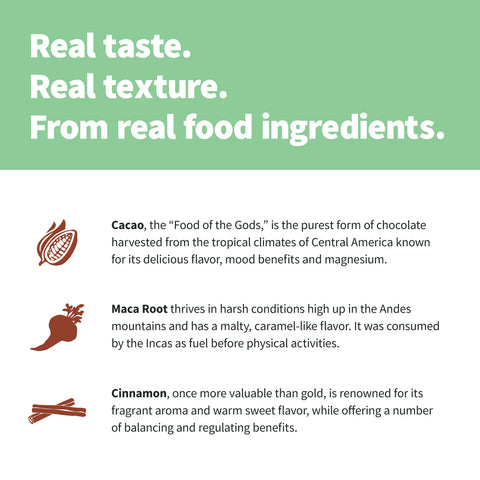 - Real cacao, maca and cinnamon