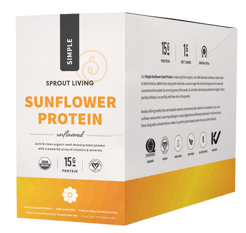Pure and hypoallergenic, our Simple Sunflower Seed Protein is a great option for those looking to keep it, well, simple. Neutral in flavory with a slight hint of nut, it blends well into anything imaginable - from a strawberry banana smoothie to a batch of peanut butter bliss balls. Feel free to make it your own and get creative! While it can be enjoyed at any time of the day, we recommend adding it to your post-workout routine (30-60 minutes after) to maximize those fitness results.