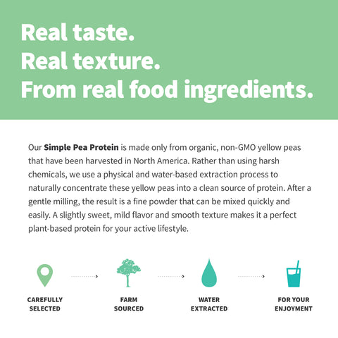 Pure and hypoallergenic, Simple Pea Protein is a great option for those looking to keep it, well, simple. Neutral in flavor with a slight hint of sweetness, it blends well into anything imaginable - from a very berry smoothie to a dish of baked oatmeal. Feel free to make it your own and get creative! While it can be enjoyed at any time of the day, we recommend adding it to your post-workout routine (30-60 minutes after) to maximize those fitness results.